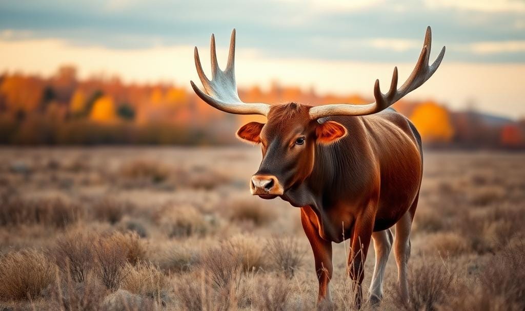 Cow with moose antlers: AI generated using Substack’s built-in image generator