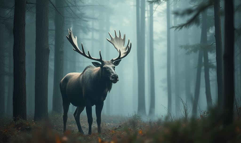 Solitary moose in the forest: AI generated using Substack’s built-in image generator
